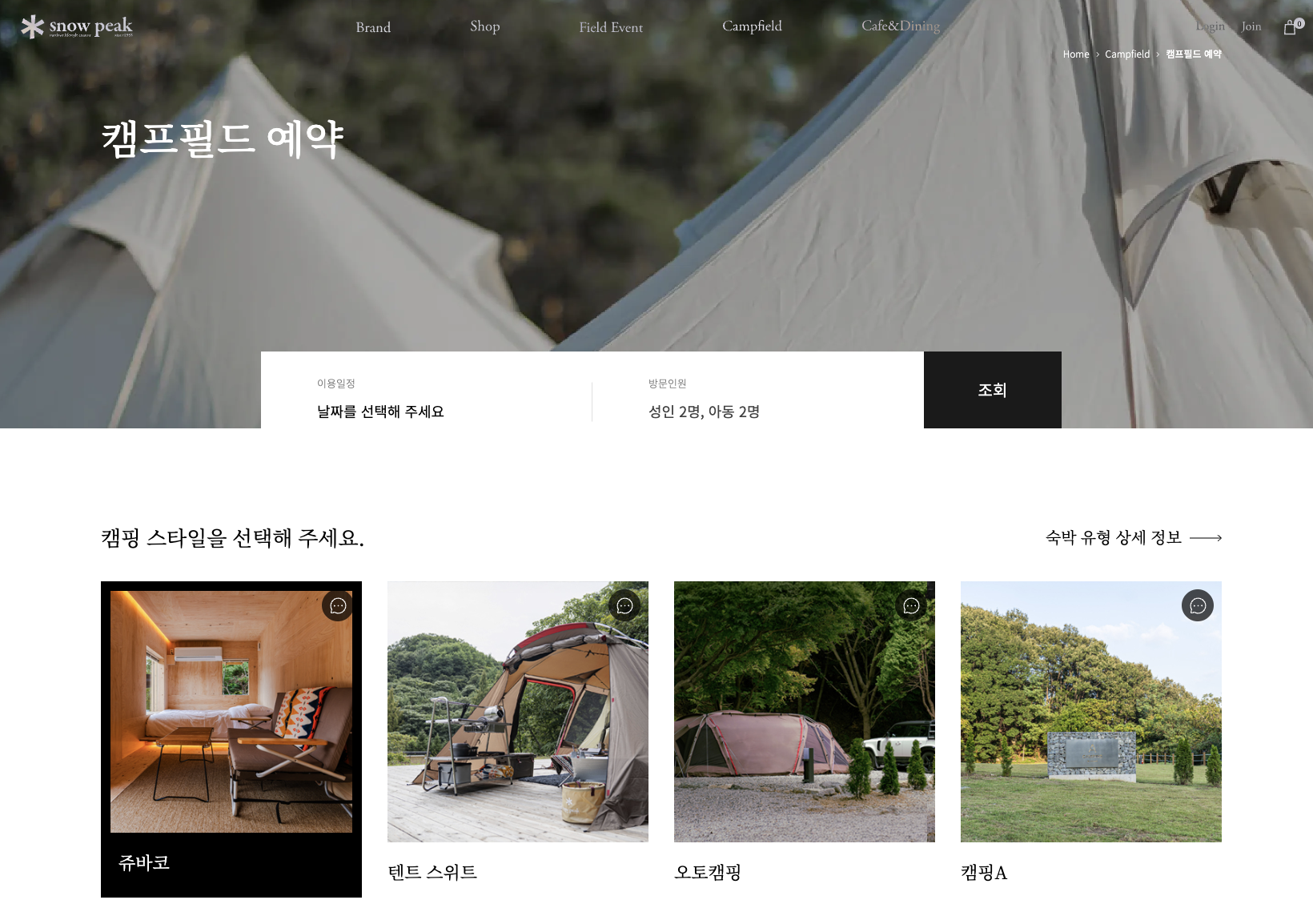 - 숙박 형태 선택 (쥬바코, 텐트 스위트, 오토캠핑 등)